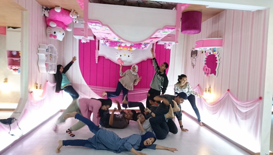 Keunikan dari tempat wisata keluarga yang satu ini adalah konsepnya yang menjadikan dunia serasa terbalik dan tidak semestinya. Untuk dapat masuk ke upside down world kamu harus merogoh kocek sebesar 40.000 rupiah per orang.